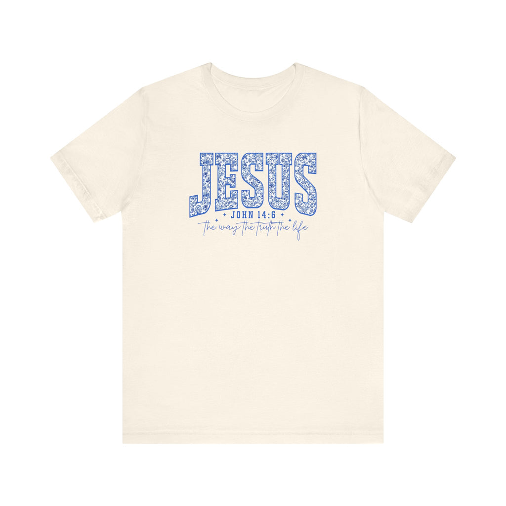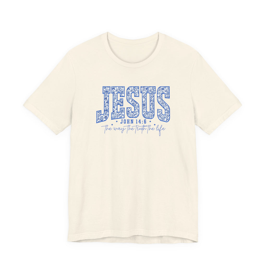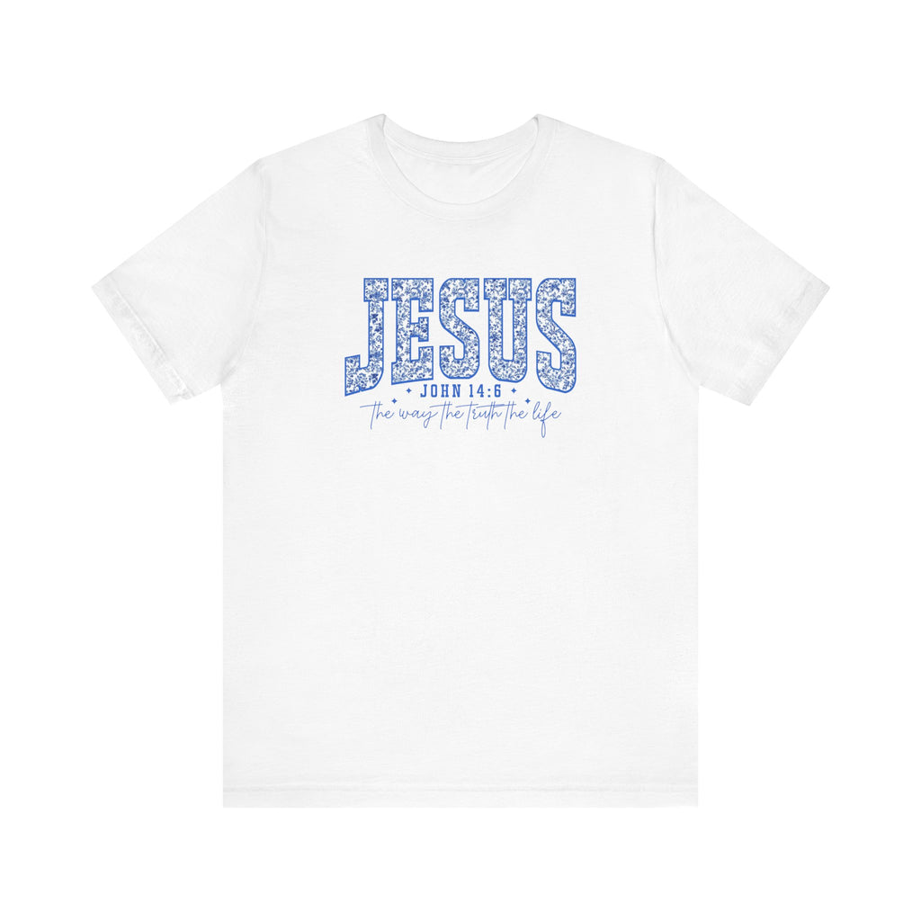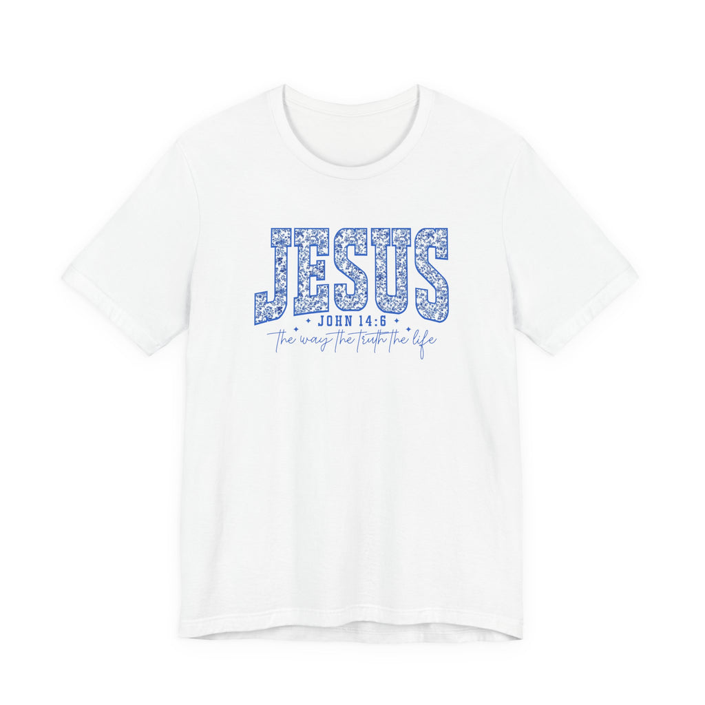 This religious floral tee featuring Jesus and John 14:6 exudes a sense of faith and spirituality. Perfect for those looking to express their religious beliefs with a touch of nature-inspired design. Ideal for Christian holidays, church events, and everyday wear for believers.
